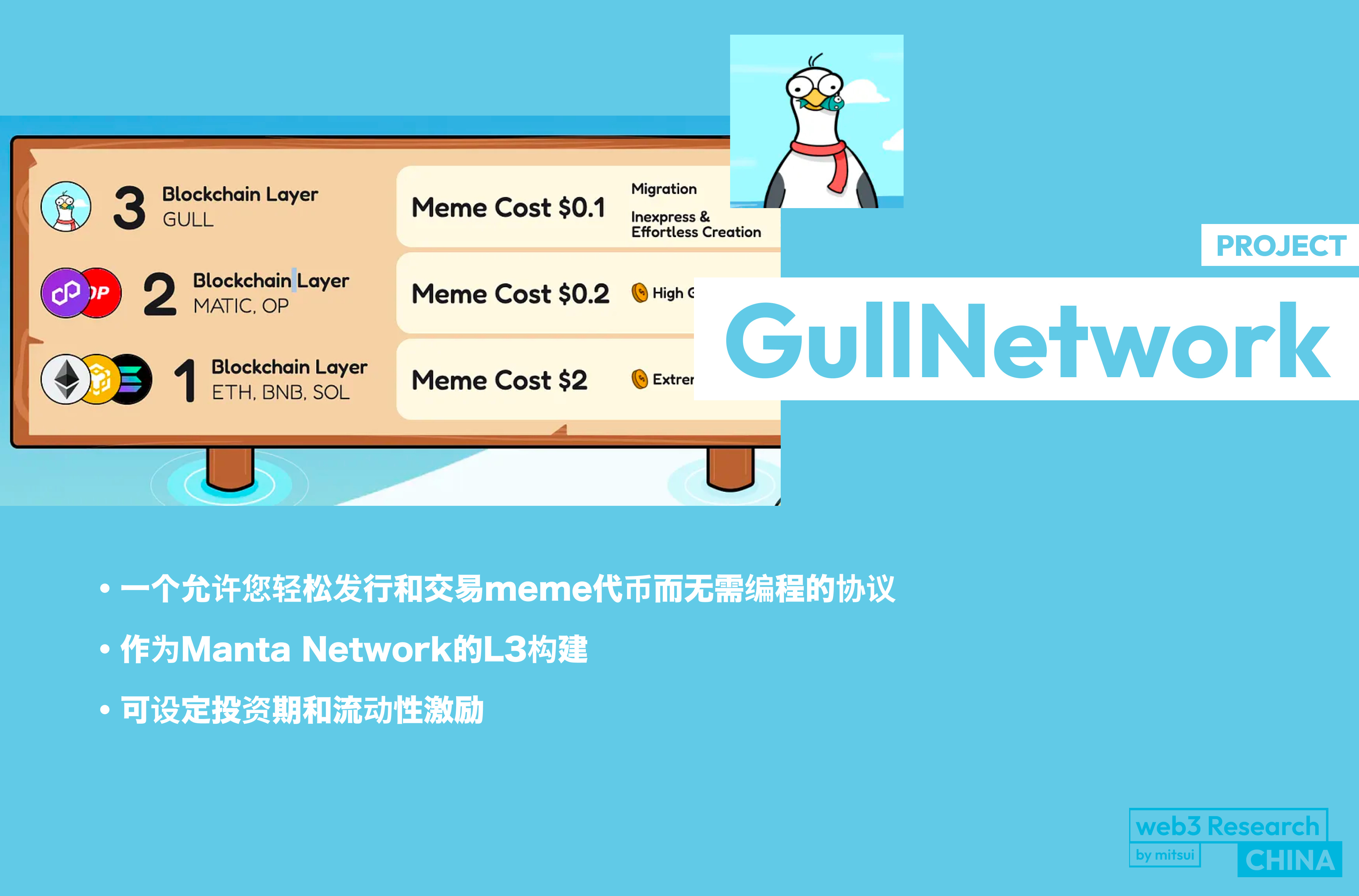 【GullNetwork】一个允许您轻松发行和交易meme代币而无需编程的协议 / 作为Manta Network的L3构建 / 可设定投资期和流动性激励 / @GullNetwork