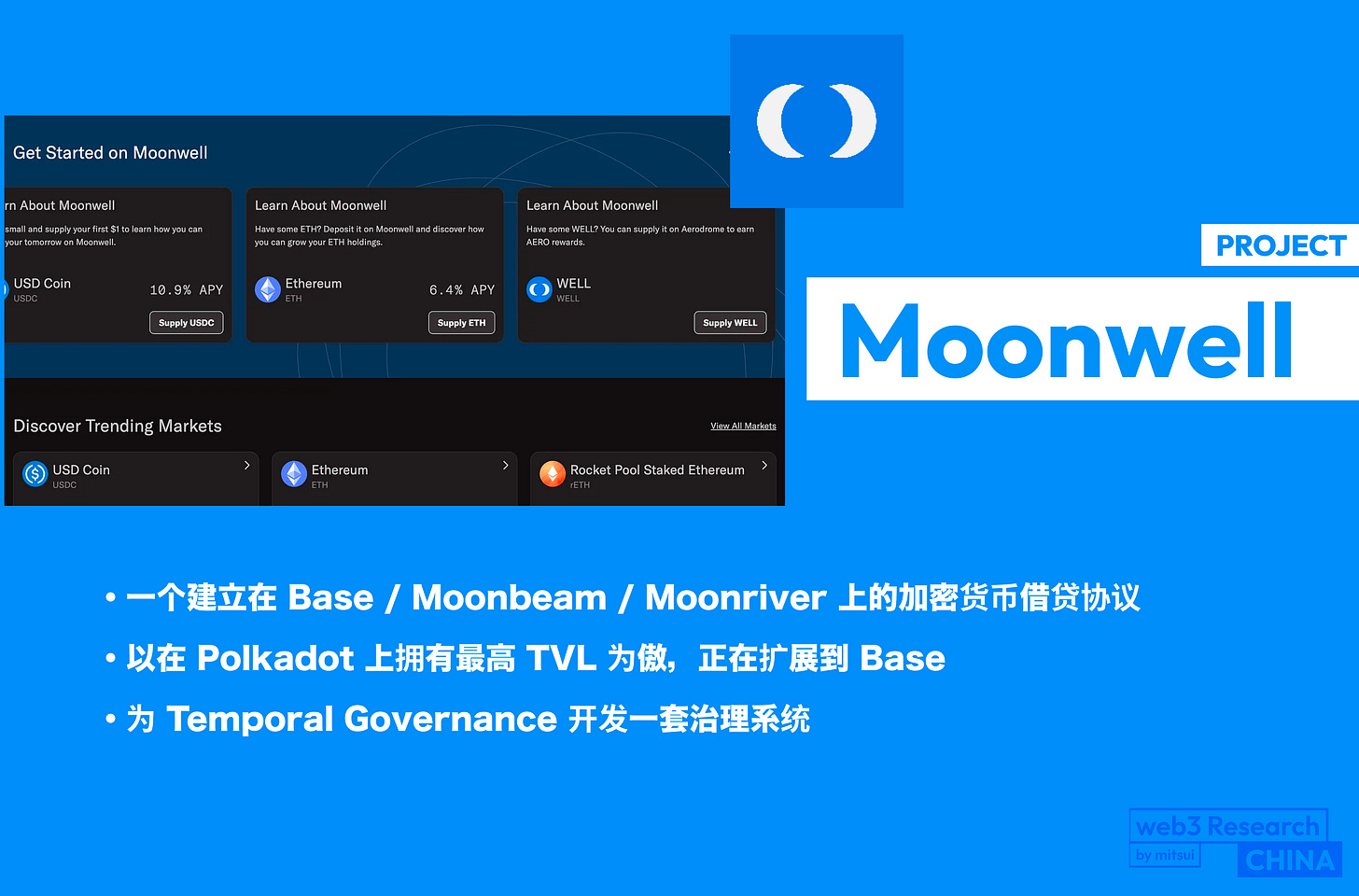 【Moonwell】一个建立在 Base / Moonbeam / Moonriver 上的加密货币借贷协议 / 以在 Polkadot 上拥有最高 TVL 为傲,正在扩展到 Base / 为 Temporal Governance 开发一套治理系统。