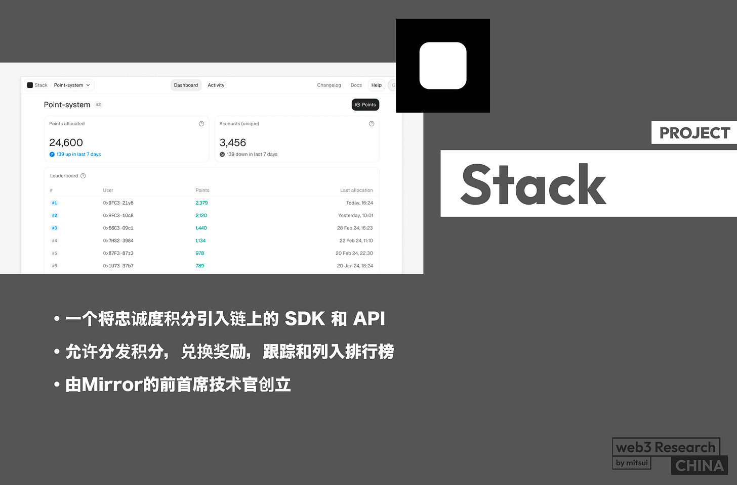 【Stack】一个将忠诚度积分引入链上的 SDK 和 API / 允许分发积分,兑换奖励,跟踪和列入排行榜 / @stackdotso